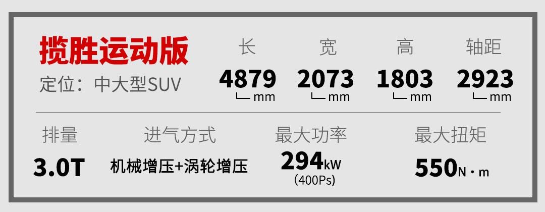 HST车型搭载了高功率版的3.0T发动机,并加入了48V轻混系统,其最大输出功率为294kW(400Ps),峰值扭矩550N·m;另外新车还提供265kW(360Ps)的低功率版本,与之对应的是SE和HSE车型。