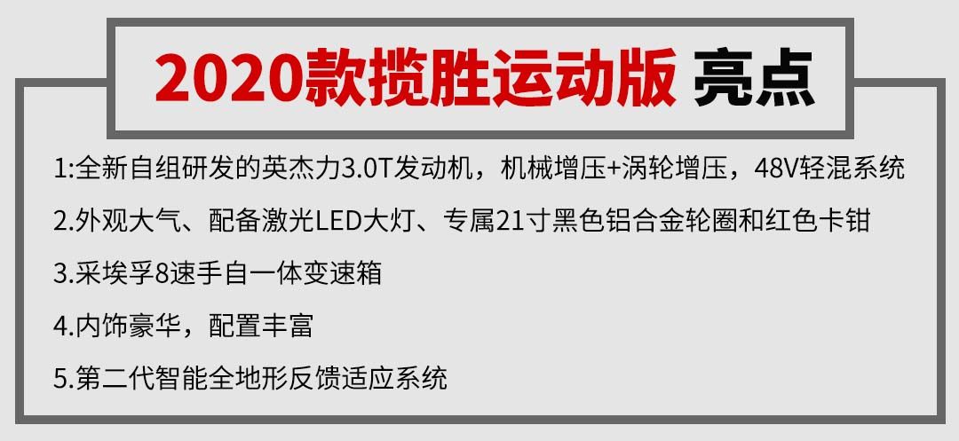 在过去很长一段时间,发动机一直是路虎心中的痛,如今自主研发的英杰力2.0T、3.0T发动机已在家族产品中全面铺开,也算是结束了没有发动机的尴尬。从搭载在揽胜运动版的这款3.0T+48V轻混系统来看,其动力响应、平顺性和燃油经济性方面相比老款的那台3.0T V6机都有了一定的提升。