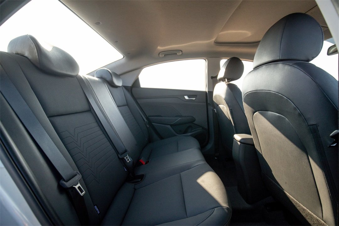 但要说空间利用方面,小型车还是无法摆脱后排乘坐空间稍显局促的缺点。从一名成年男性的乘坐体验来说,后排的腿部空间还算中规中矩,但头部空间则相对没那么充裕。并且后排座椅的宽度也相对有限,想要坐下3个成年人的话舒适性会大打折扣,考虑到悦纳的后排也没有加入中央头枕的设计,车辆本身应该也是以1~4人出行需求为基础设计的。