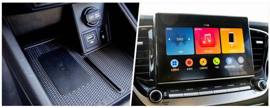 配置向来是韩系车的强项,悦纳也不例外,虽然车辆的入门级配置确实有点“斋”,但作为主推车型的1.4L CVT精英版TOP,基本满足了消费者日常驾乘对配置的需求。除了上面提到的液晶仪表和中控屏外,倒车影像、无钥匙启动自动空调等都给车辆的功能性加分不少,而且内置百度CarLife以及手机无线充电这两项配置倒是给了教授一点小惊喜。