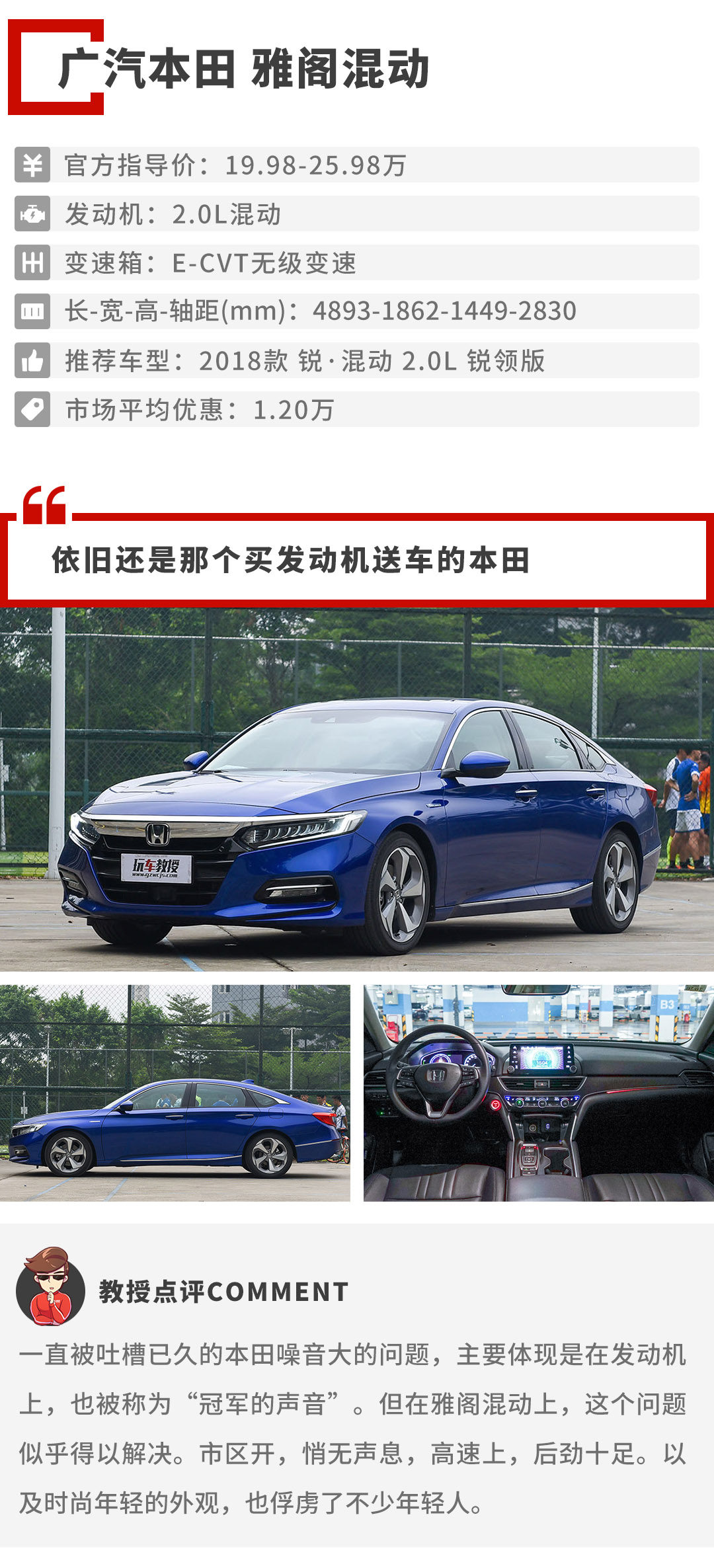 但在底盘表现上,或许是想突出它的运动操控性。整体感觉偏硬,而且并不是扎实的那种硬的感觉,而是生硬。对车内乘客的舒适性,有一定的影响性。教授认为,尽管新款雅阁在设计调性上是运动的,但出现这样的底盘表现,我想并不是我们消费者所想得到的。