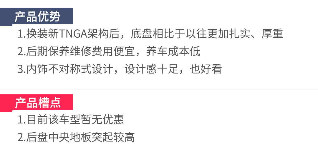 相比于老款,换装了新TNGA架构后,最明显进步在于底盘。无论是坐姿还是底盘的扎实度,都与以往的丰田截然不同。后悬架也由原来的扭力梁非独立悬架,换成了E型多连杆独立悬架,对车辆的稳定性和操控性,都有了不少的提升。