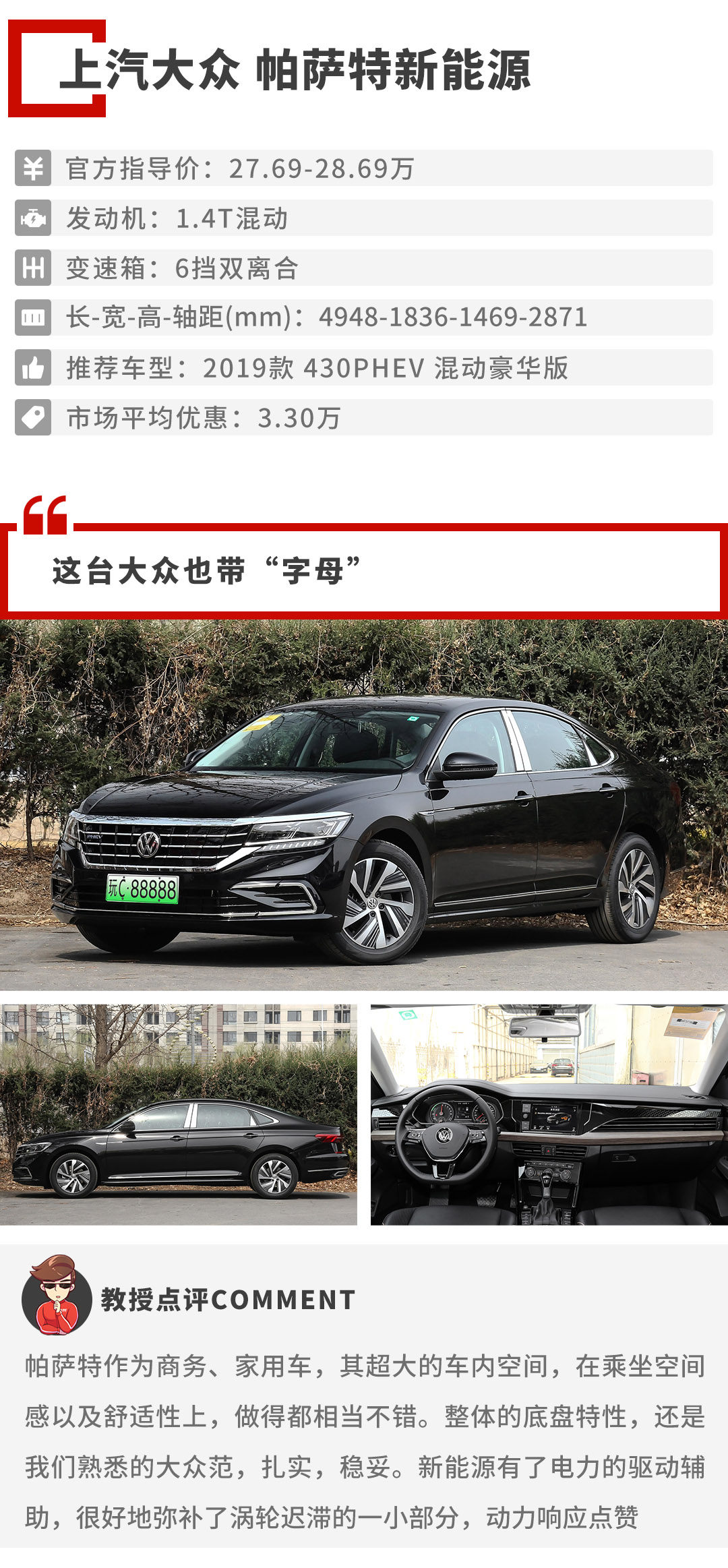 与上述车型不同,帕萨特新能源并不是单纯的自然吸气加混动结合,而是涡轮增压加混动双加持。1.4L涡轮增压发动机,加上混动系统。电动机正好,完美地弥补了涡轮增压的迟滞阶段。使得动力输出毫无拖拽感,以及延迟感。转数从0—6000rmp动力输出都是源源不断。尽管只是1.4L的排量,但实际表现能与2.0L车型相媲美。