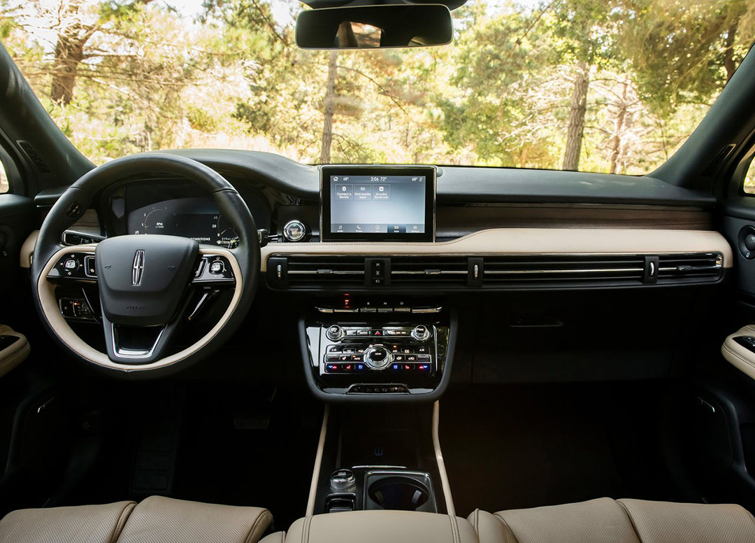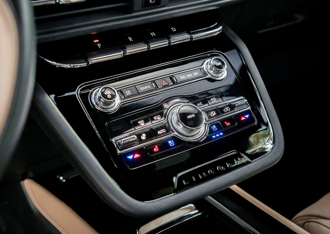 悬浮式中控台按键区域设计感十足,钢琴烤漆配合镀铬按键,简单直接地营造出美系豪华品牌独特的美式豪华感。“琴键式”换挡机构对比起MKC之上的按键式换挡机构更有质感、设计感。