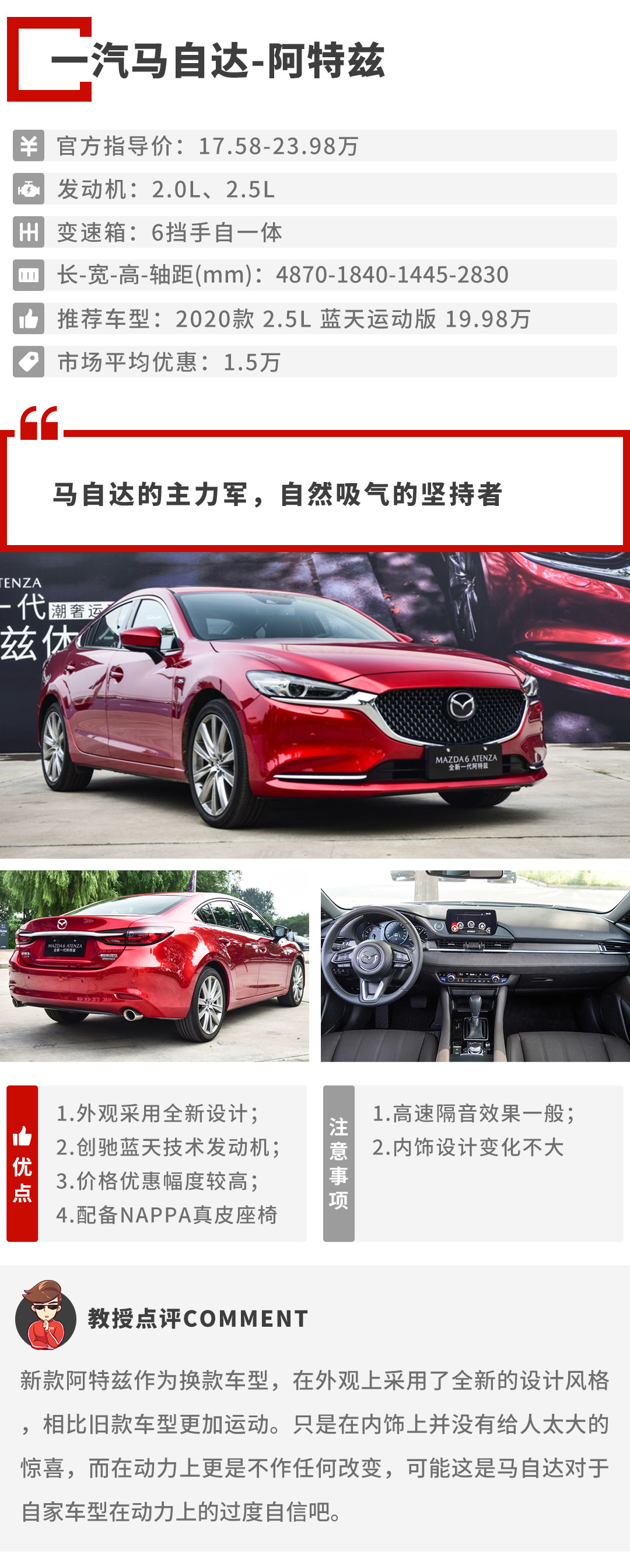 马自达除了在拒绝加长方面坚持外,在采用自然吸气上也是非常的坚持,可以算是这两者的代表了。作为一汽马自达的主力车型,全新阿特兹在外观设计上很大程度上还原了概念车的外观,大面积的点阵式格栅突显该车的年轻感,鹰眼式大灯充满着攻击性。