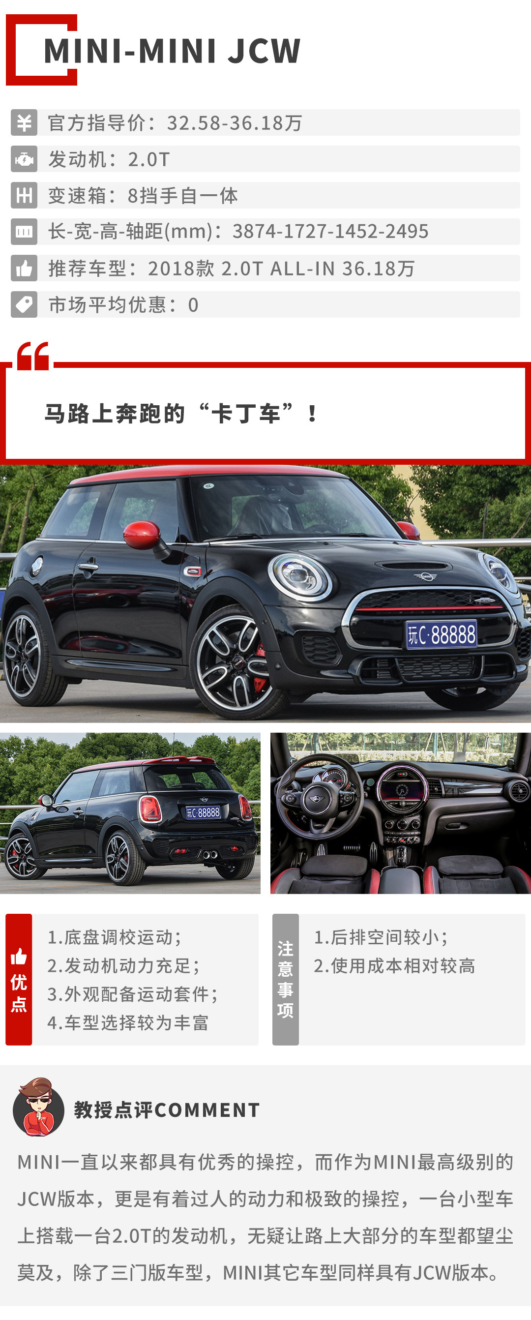 上述的几款车型无论是从外观、内饰还是动力,都是极具运动风格,不过同样的都有一个缺点就是后排空间并不充裕。如果你是一个追求驾驶乐趣、喜欢驾驶的人,这几款车绝对都非常适合你,无论是平时代步还是周末上山都可以带给你激情,但是如果想作为家用,建议你还是要三思,小心尊贵的后排乘客有意见喔。