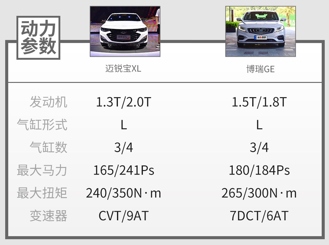 而迈锐宝XL的销售主力则集中在2.0T车型,动力可以说是迈锐宝XL的最大优势。2.0T+9AT,最大功率241马力,还配备9AT变速箱,不仅动力上优于博瑞GE,而且9AT也比7挡双离合更深得人心。