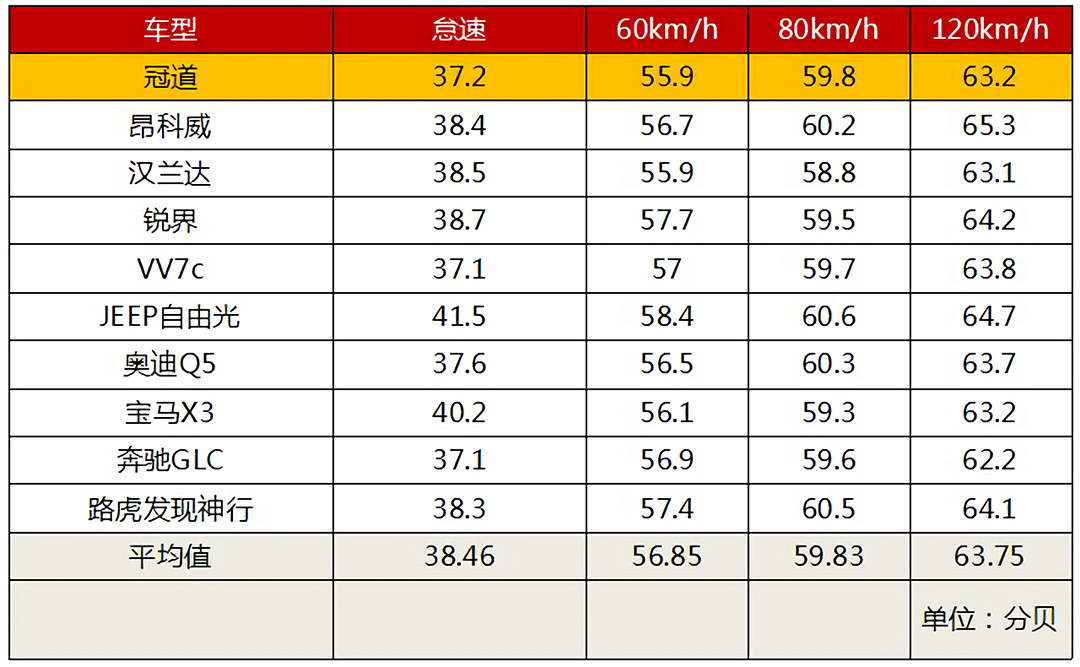 空谈无益,数据说明。由对比数据可见,冠道怠速噪音在中型SUV里仅比奔驰GLC高0.1分贝,而对比素有豪华品牌质感的昂科威,各项表现也呈现出领先的优势,成绩可以说非常出色。