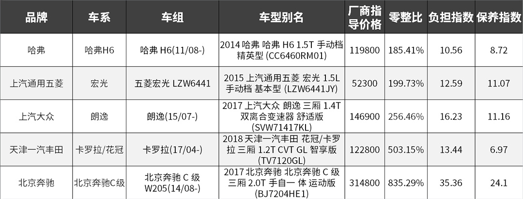 要说后期维护费用,可能会不太好统计,毕竟每台车都是不一样的,而每台车坏的地方当然也会是不一样的。不过好在,现在有个最简单直接体现后期维护费用的数据——零整比。