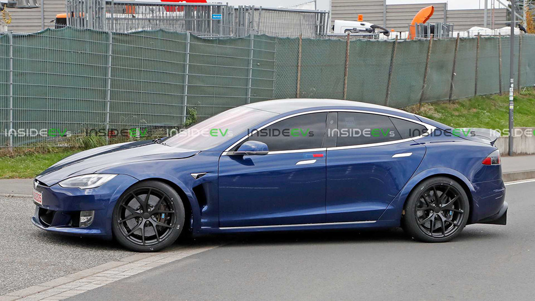 日前,有外媒曝出特斯拉Model S又重返纽博格林赛道,并创造出7分13秒的非官方测试成绩,该成绩打破了此前Model S创造的7分23秒成绩。重返纽北赛道的Model S相比上一次来到赛道的车型在外观上发生了一定的变化。其前后轮眉经过了加宽处理以包裹住更宽的轮胎,轮圈采用黑色树杈造型,前轮后侧还加入了通风口以优化空气动力学。据了解,这款车将拥有三台电机并配备7个座位,不仅相比现款车型外观看起来更战斗,而且性能也会有较大的提升。马斯克表示,该车型预计将会在明年十月到十一月份左右量产。(图片来源:Inside EVs)