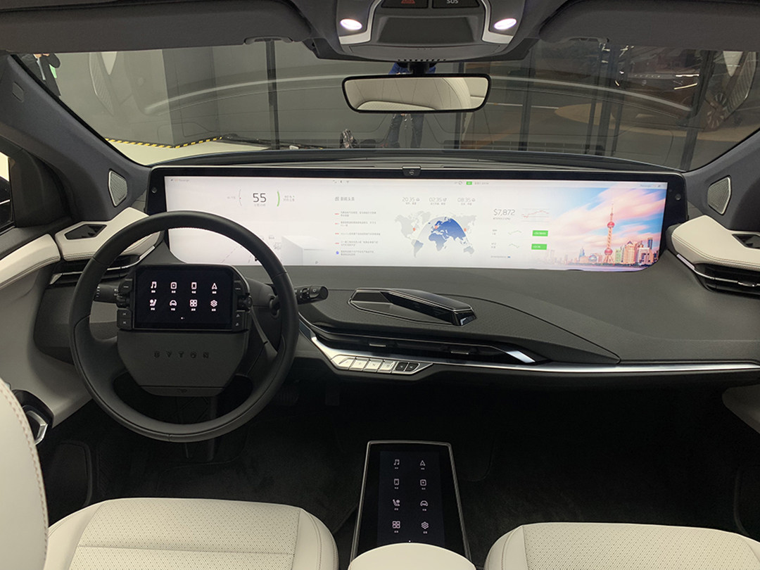 11月6日,拜腾对外公布了旗下首款车型——M-Byte的量产版。量产版车型保持了概念车大部分的设计理念,车头采用封闭式设计扁平的分体式头灯被镀铬饰条分开,下半部分的大灯和中网连接,整个前脸给人一种憨厚的感觉。内饰上,拜腾M-Byte量产版车型搭载48英寸共享全面屏,驾驶员触控屏、副驾触控屏、BYTON隔空手势传感器、驾驶监控系统等设备依然得到保留,使整个座舱充满科技感。动力上,新车提供两种动力版本:最大功率为200千瓦的单电机后驱版本,以及300千瓦的前后双电机四驱版本。该车还提供了两个不同电池容量的车型:后驱动力版本可选装72千瓦时或95千瓦时的电池组,对应的NEDC续航里程为430公里和550公里;四驱动力版本采用95千瓦时的电池组,NEDC续航为505公里。拜腾M-Byte量产版的亮相让我们终于看到有厂商在智能电动车这个领域走出了传统、特斯拉以外的第三条创新之路。