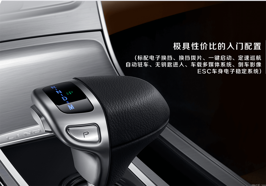 内饰、配置方面,荣曜主打棕色的内饰很有居家风格,中控布局比较规整,不过方向盘的设计看起来比较廉价,造型和配色比较土气,而且是塑料材质,车标要是换成字母估计视觉效果会好很多。配置方面,新车全系标配ESC车身电子稳定系统、电子换挡、换挡拨片、定速巡航、一键启动、无钥匙进入、自动驻车、车载多媒体系统、倒车影像等配置。以入门级自动挡车型为例做横向对比,陆风荣曜和上文所提及的车型在配置上差别不明显,主动/被动安全配置基本一致,此外,陆风荣曜是唯一配备LED大灯的车型,其余车型的大灯均为卤素光源,不过荣曜也是唯一一款没有陡坡缓降功能以及车窗防夹手功能的车型。