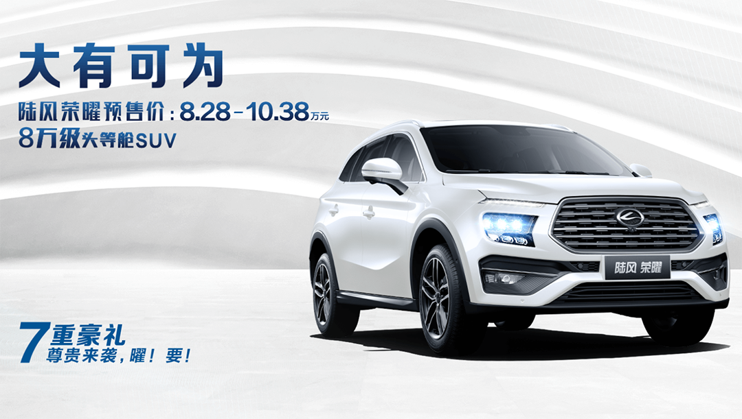 11月5日,陆风汽车旗下全新紧凑级SUV——陆风荣曜正式开启预售,新车共推出3款自动挡车型,预售价格区间为8.28—10.38万元,结合车型的定位,目前陆风荣曜要面对的主流竞品车型主要有荣威RX3、荣威RX5、奇瑞瑞虎7、哈弗H4等车型,可谓亚历山大。不过,从各大各路媒体的推广信息来看,陆风对这款新车应该是寄予厚望,并且信心满满,来看看官方怎么说: