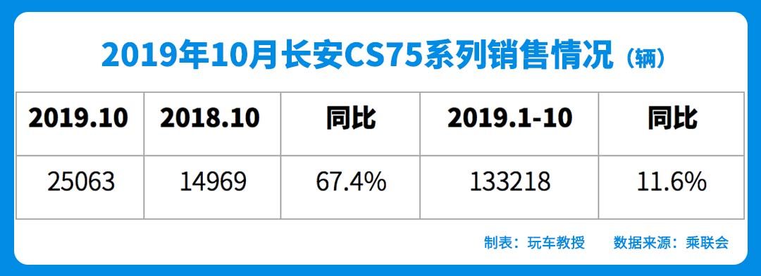 由CS75和CS75 PLUS组成的长安CS75系列在10月份取得了2.5万的销量,同比增长67.4%,排名上升3位,位居SUV销量榜第二名。