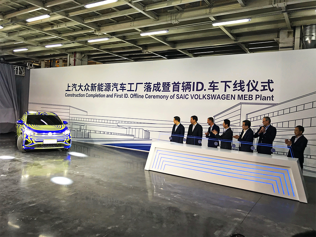 特斯拉很快,大众也不慢。上汽大众正式宣布,位于上海的全新MEB平台工厂建设完毕,并下线了首款ID家族的试制样车,同时还亮相了即将投产的ID.3纯电动车,批量投产的时间定在2020年10月,年产能为30万辆。