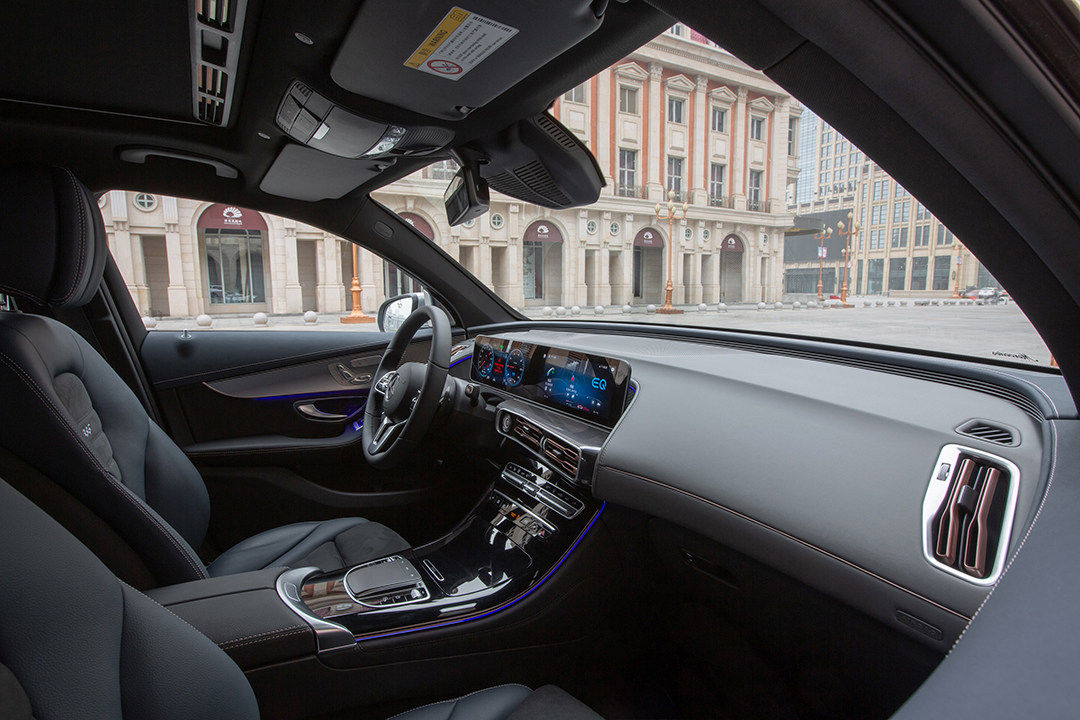 奔驰EQC的内饰延续了燃油车型的风格,贯穿式的显示屏和涡轮样式的启动按键都是熟悉的设计,怀挡机构也得到了沿用,可见除了动力换为纯电之外,奔驰EQC并未在其他方面给到更多的惊喜,相对还是太保守了。
