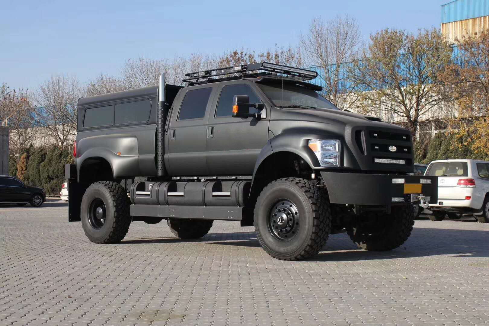 在国内想驾驶它,首先需要B照以上,然后就是注意车身尺寸,整车长6.5米,宽2.69米,高2.86米,真的非常“巨”。排气管被设计在车身两侧,除了想展现霸气外,更考虑到涉水深度这一重要问题。但是说回来了,这车排气管和货斗,其实都是选装的。