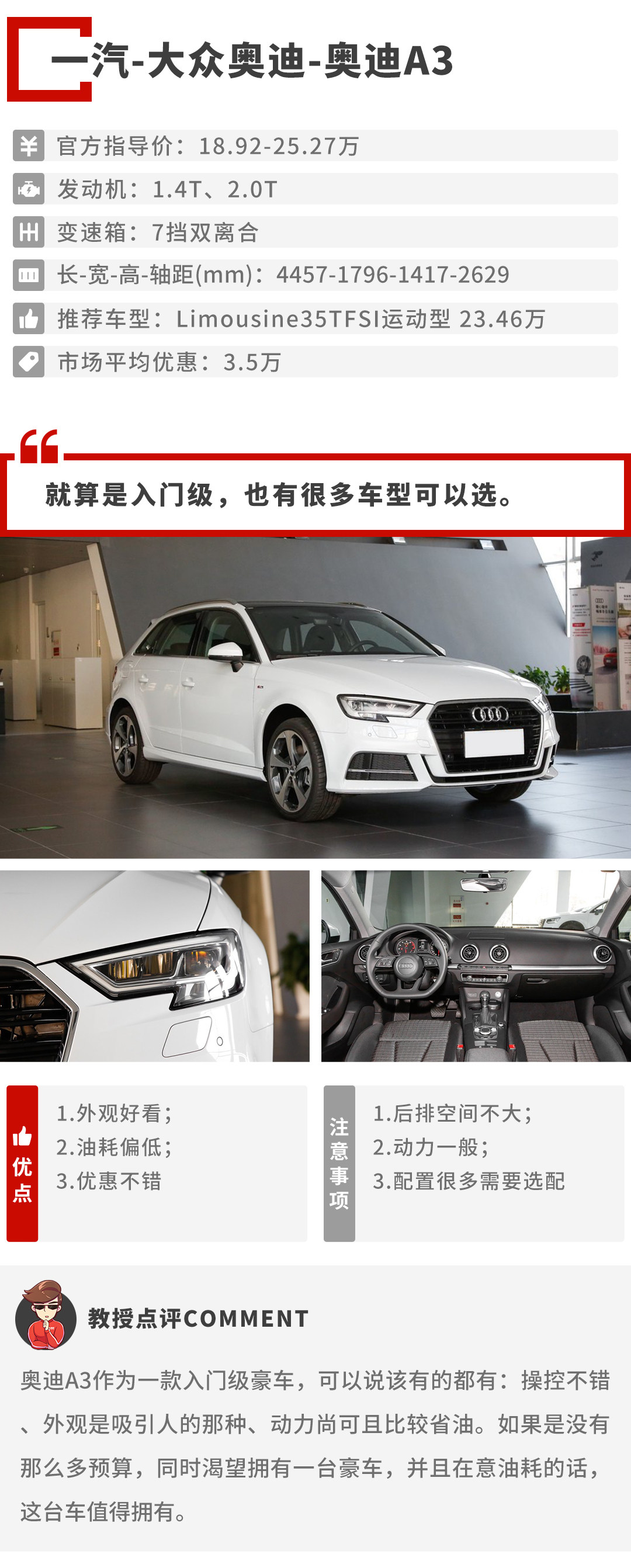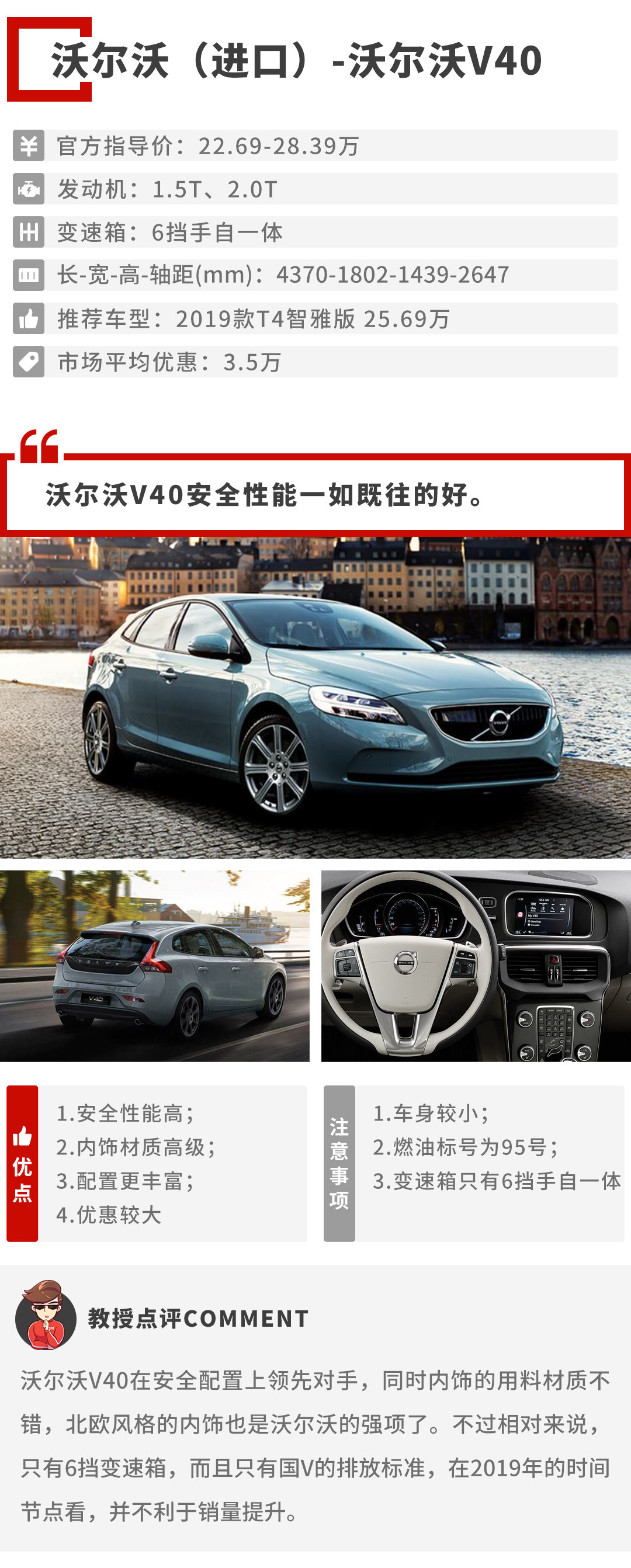 教授推荐的这几款车型分别是奥迪A3、宝马1系、雷克萨斯CT、沃尔沃V40。