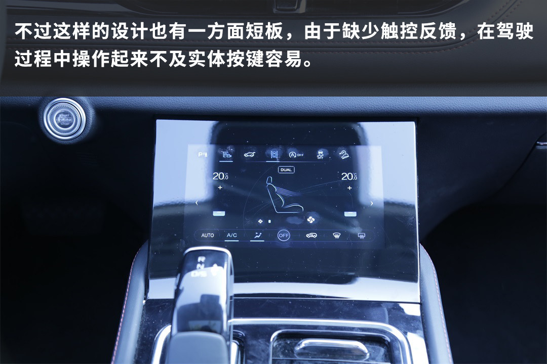 多功能方向盘上的按键看似触控感应,其实是在按键上采用了镜面效果的处理,实际上还是物理按键。