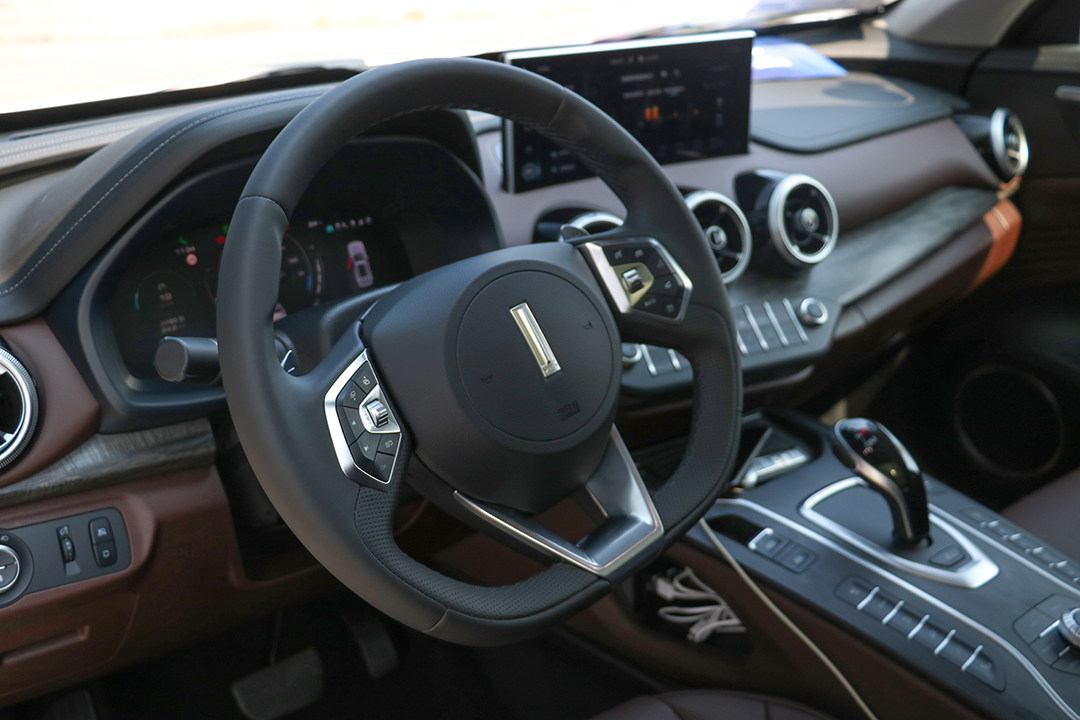 不过,VV7 PHEV和VV7 GT PHEV两款车型的方向盘空隙量都很小,精准度控制得很不错,指哪里便往哪里。并且方向盘的调校也都比较轻盈,即便是在运动模式下,方向盘打起来也非常轻松,手感非常好。