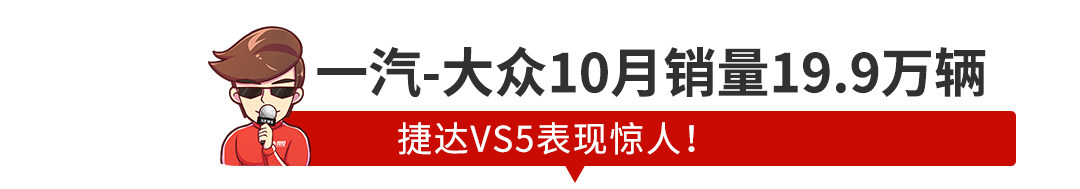 根据一汽-大众官方信息,今年10月一汽-大众终端销量达19.9万辆(含奥迪品牌进口车),同比增长10.2%,1-10月累计销量达168.5万辆(含奥迪品牌进口车),已经完成2019年销量目标的近80%(大众品牌销量目标144.5万辆;奥迪品牌销量目标68.2万辆,共计212.7万辆)。值得一提的是,捷达品牌两款车型10月终端销售为16626辆,其中VS5达11088辆,环比大幅增长36.2%。