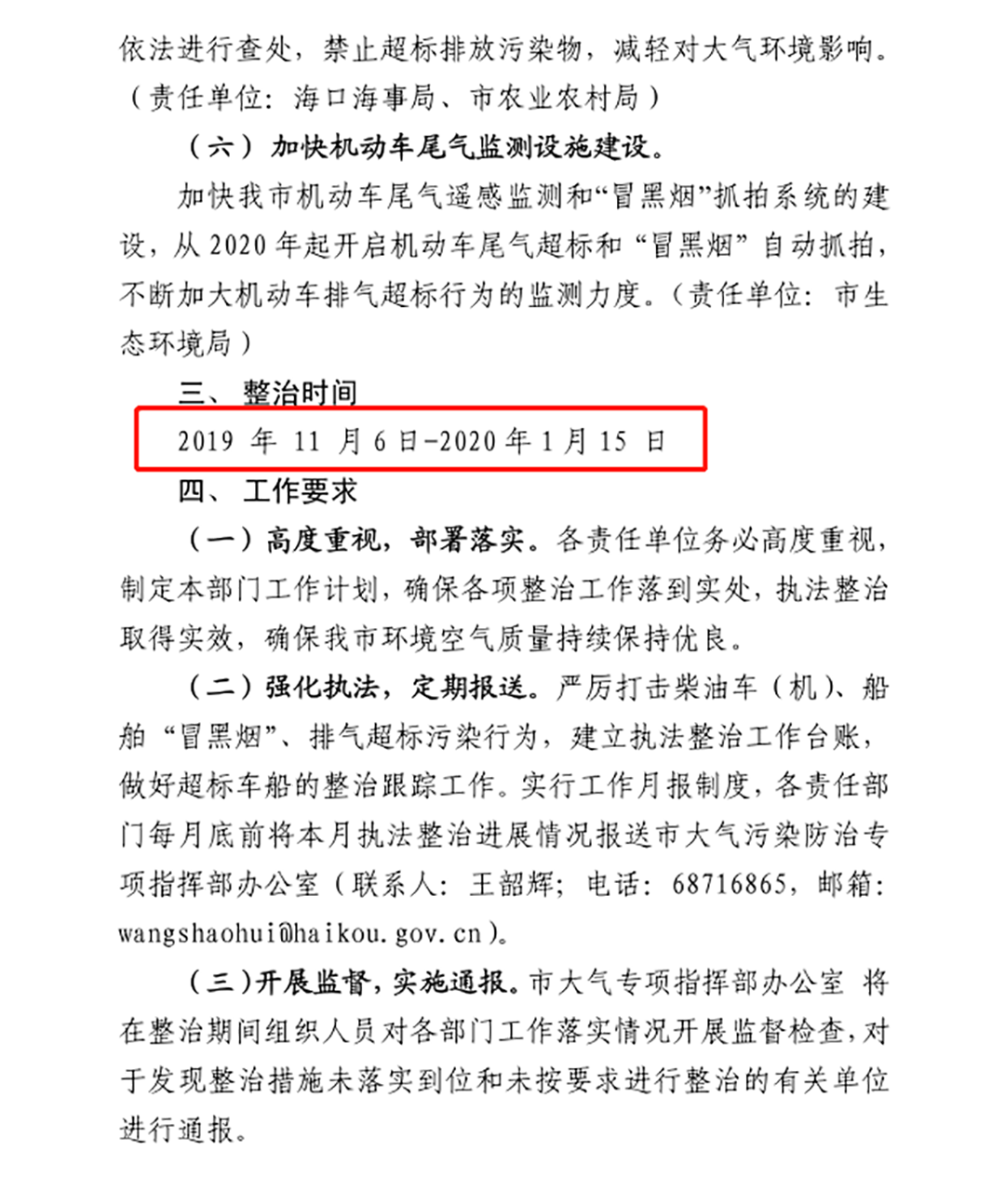 近日,海口市大气污染防治专项指挥部办公室近日印发了《海口市交通污染整治工作方案》的通知。为此,海口市开展为期71天的整治专项行动,持续时间至2020年1月15日,有关部门将从六个方面进行整治。其中包括“从 2020 年起开启机动车尾气超标和‘冒黑烟’自动抓拍,不断加大机动车排气超标行为的监测力度。”换而言之,今后在海口市的机动车,尾气“冒黑烟”,就有可能被抓拍到,并且最高处以五百元罚款。海口市在环保建设方面,力度及方式都走在国内的前列,2030年起海南省将全面禁止销售燃油汽车。