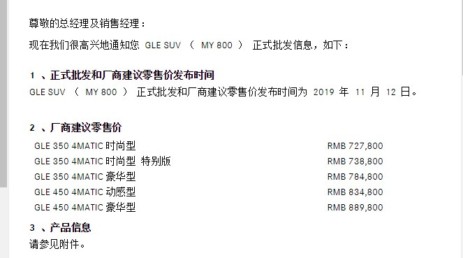 教授从有关渠道获取到疑似奔驰2021款奔驰GLE官方指导售价。新车或售价72.78-88.98万元,共5款车型,消息尚未得到官方证实,不过据相关人士透露,明年GLE 450时尚型将分为动感型和豪华型两款车型。目前在售的奔驰GLE 2020款售价72.78-84.38,3款车型可选,比起现款奔驰GLE,新款GLE整体售价有所提升。作为参考,宝马X5 指导价:69.99-84.99万元,而奥迪Q7起步价则是68.38万元,由此可见,近73万元起步价的奔驰GLE在价格上不占据优势。