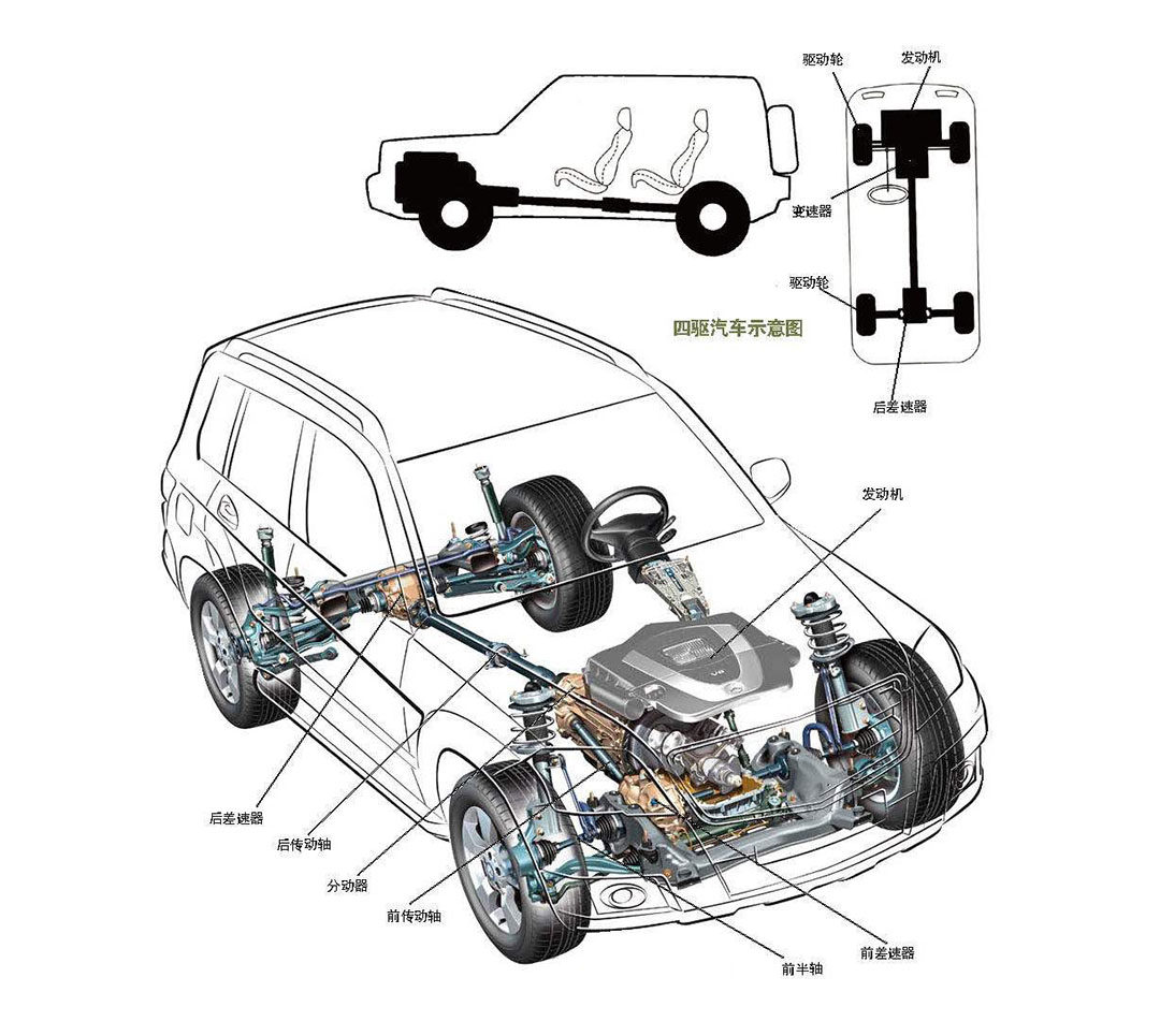 要弄清楚这个问题,首先就要明白何为四驱,四驱系统顾名思义就是四轮驱动,而且我们的狭义乘用车(MPV/SUV/轿车)几乎都为四个车轮,因此又叫做全轮驱动。