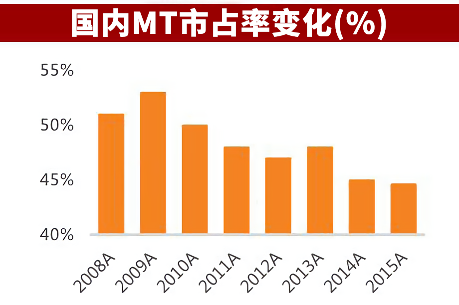 根据中国产业信息网的调查显示,早在2015年,手动挡车型的产量就已经降低到46%,预计每年会下降2%,截止目前为止,手动挡车型的产量应该不会高于40%。