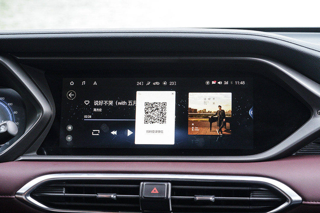 来到车内,从视觉上便能感受到新车内饰的提升。中控台为“X”型的设计理念,车内采用了大面积的软质材料包裹,在整体质感上有着不错的表现。双12.3英寸的连体屏设计,让内饰的科技感得到很大的提升。