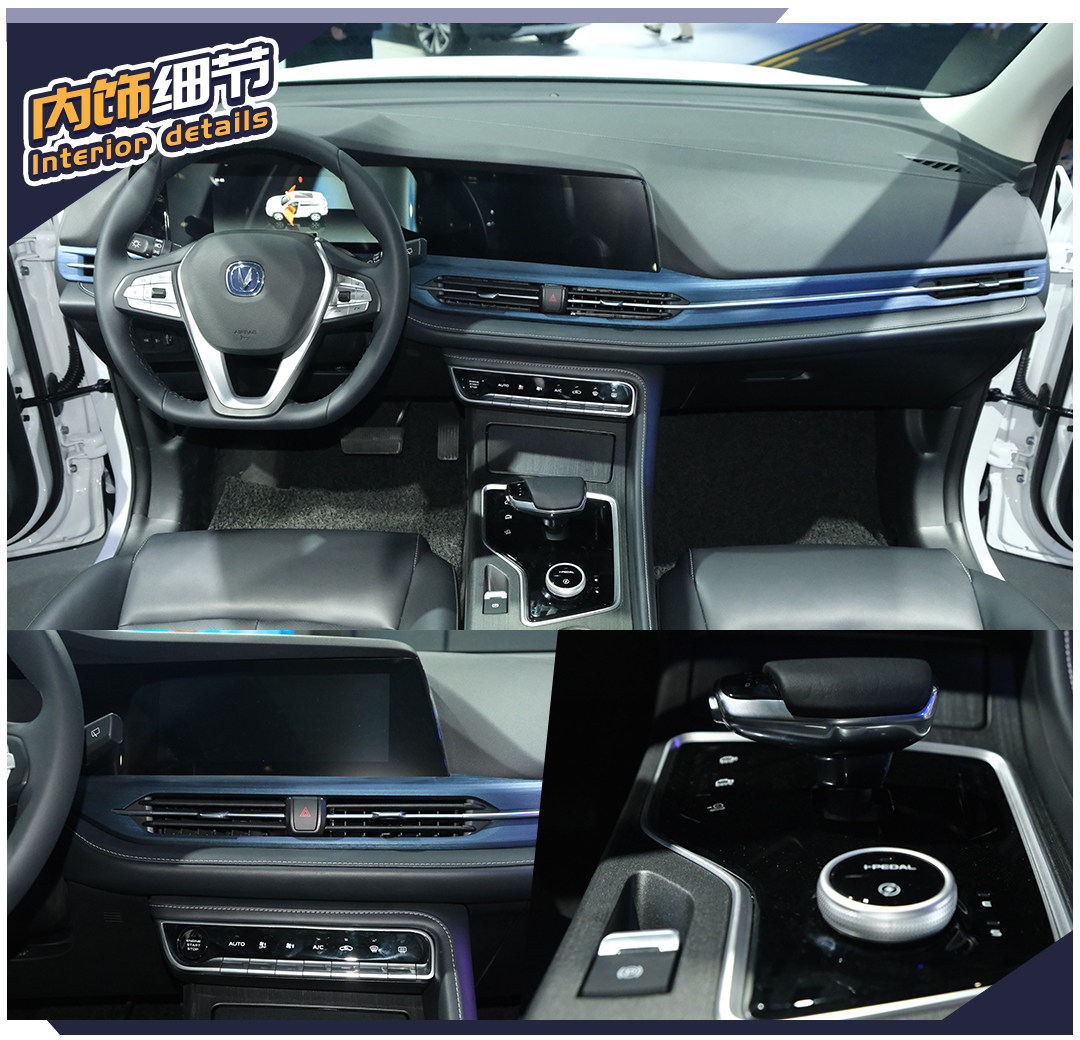 内饰方面,E-Rock沿袭了CS55 PLUS的设计风格,环抱式的设计同时略微偏向主驾侧,整个中控以蓝色饰板左右贯穿及分层的同时融合了空调出风口。上方全液晶仪表盘以及中央显示屏连成一体,增加了车内的科技感;三辐式的方向盘、游艇式换挡杆、全车多处的软质搪塑材料以及金属拉丝工艺的结合,给车内增加高级感和年轻感。
