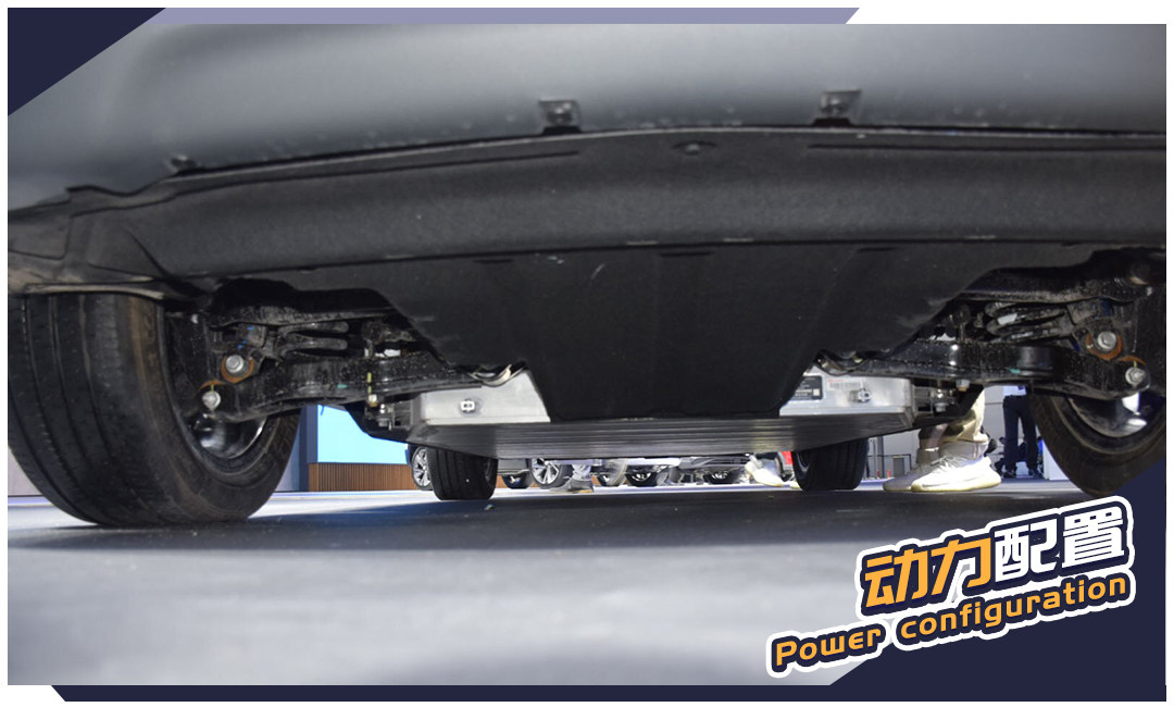 根据此前的申报信息来看,长安E-Rock使用一台218Ps的永磁同步电机作为驱动源,电池是由比亚迪提供的三元锂电池,官方表示该车的NEDC续航里程为605km,从图中可见,长安E-Rock的底盘平整,电池有专门的电池壳作为防护,平整的底盘有助于降低车辆风阻,增加车辆的续航里程;电池保护壳能够在电池在受到冲击的时候保护电池,防止起火、自燃等情况发生。