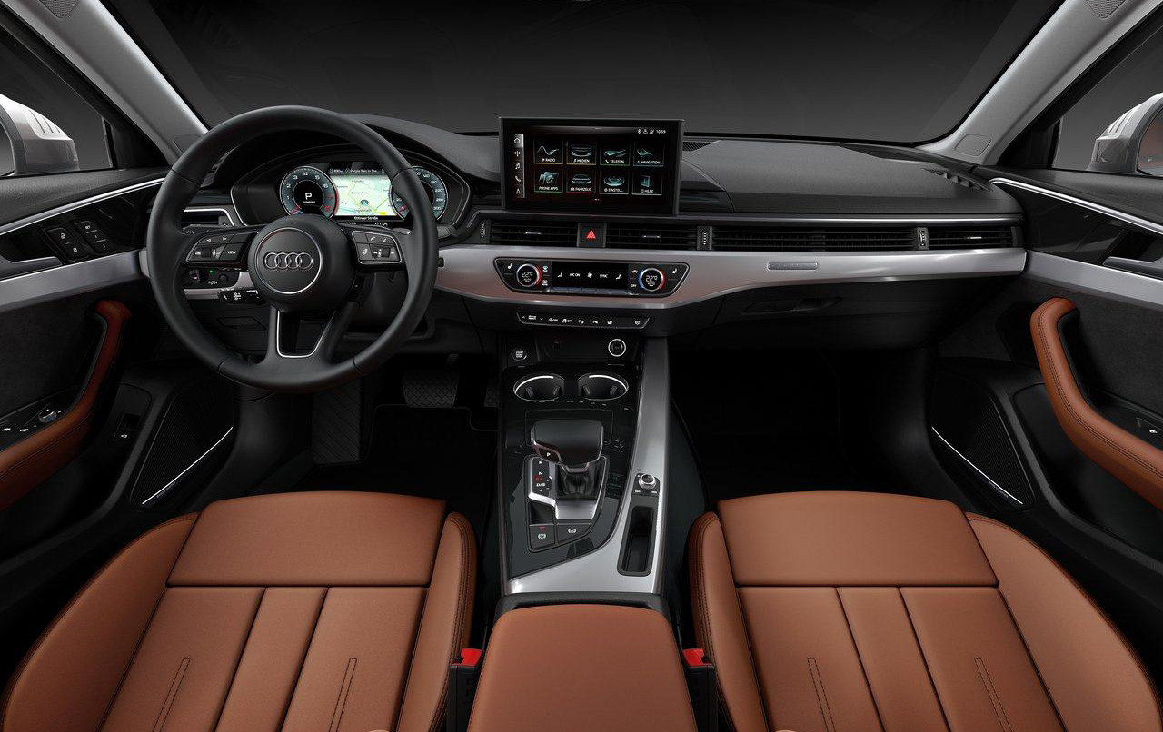海外版本的奥迪A4L,新车的内饰很大程度上维持了现状,将重点落在功能性的优化上。首先换装了10.1英寸MMI悬浮式大屏,可实现触控等操作,菜单也可自由定制,整个车机使用更加便利。另外,换挡区域在设计和功能也进行了细小的优化,储物盒取代了原有的MMI控制器。最后,12.3英寸全液晶仪表盘这一讨好的配置也同时出现在新车上,并且有三种不同风格显示模式。