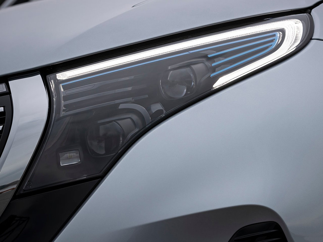 EQC作为一款纯电SUV,在脸谱的设计上继承了Generation EQ概念车的元素,被称为“时空之环”的灯带直接勾勒出整个车头的轮廓,再将智能几何光束LED大灯镶嵌其中,让整个车头的设计颇具特色,也跟奔驰燃油车型做出了基本差异。