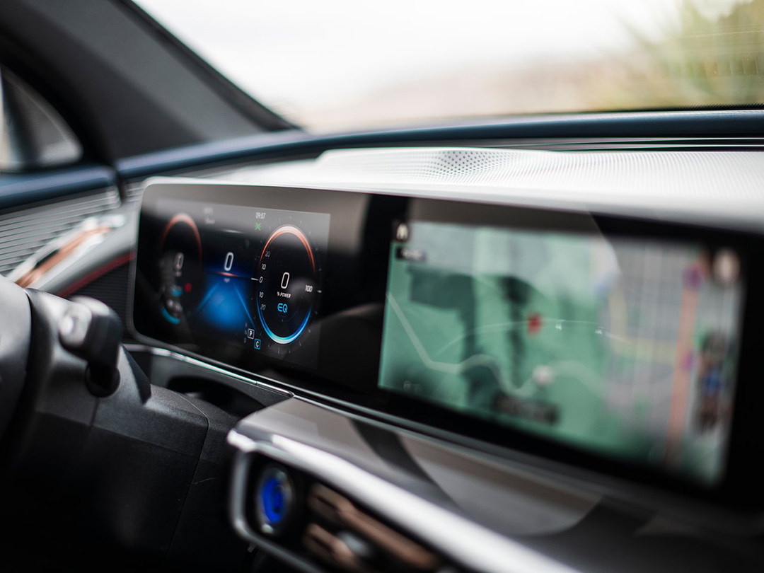 车内两块10.25英寸的悬浮式显示屏分辨率为1920*720,清晰度高、内容显示较为细腻,并且支持多点触控功能,这也是奔驰一贯的家族式设计。该车还搭载了新一代的MBUX智能人机交互系统,功能更加强大,联网更加便利;支持HUD抬头显示系统,视野范围内的投射尺寸为24*8cm,全彩信息模式让读取更为简单,也让驾驶者可以保持更高的专注力。