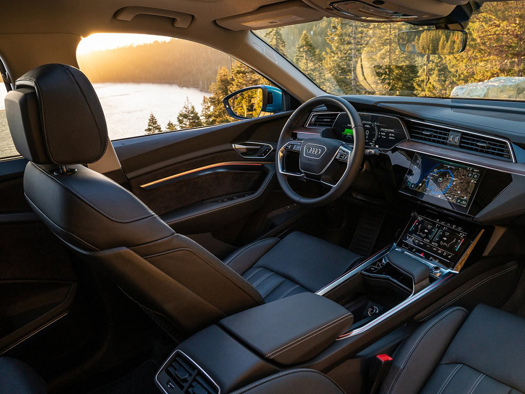 对于这个价位的e-tron来讲,其基本配置并不低,除了入门版只配备了定速巡航跟碰撞预警外,其余车款都有并线辅助、疲劳提醒跟ACC自适应巡航,顶配车型还有车道保持的功能。像前后倒车雷达、360度全景影像、矩阵式LED大灯、全景天窗、电动尾门、主驾座椅记忆、前排座椅加热等配置都是全系标配。