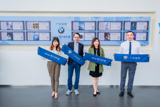接下来便是有声图书馆的启动仪式了。喜马拉雅为广州宝悦独家定制了一个新能源阅读空间,不仅有历史、潮流、科技、旅游、亲子类的有声图书,还有广州宝悦的品牌声音——关于BMW新能源的小故事。客户们在这里不仅能感受文化,陶冶性情,还可以感受BMW新动能的科普和车评,感受BMW插电式混合动力汽车的“触电”魅力。