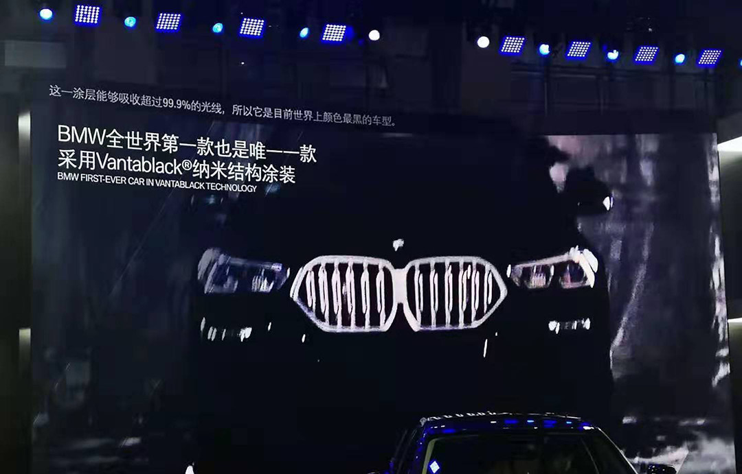 而在此次广州车展上,宝马X6 Vantablack 特别版车型也在车展上公布了一些信息,遗憾的是现场没有实车,外观上采用Vantablack VBx2涂层,可吸收超过99.9%的可见光源,因此对于车身细节也是难以窥见一二。这种特殊的配色更像是一种噱头,对于行车安全的影响也会有一定的质疑。