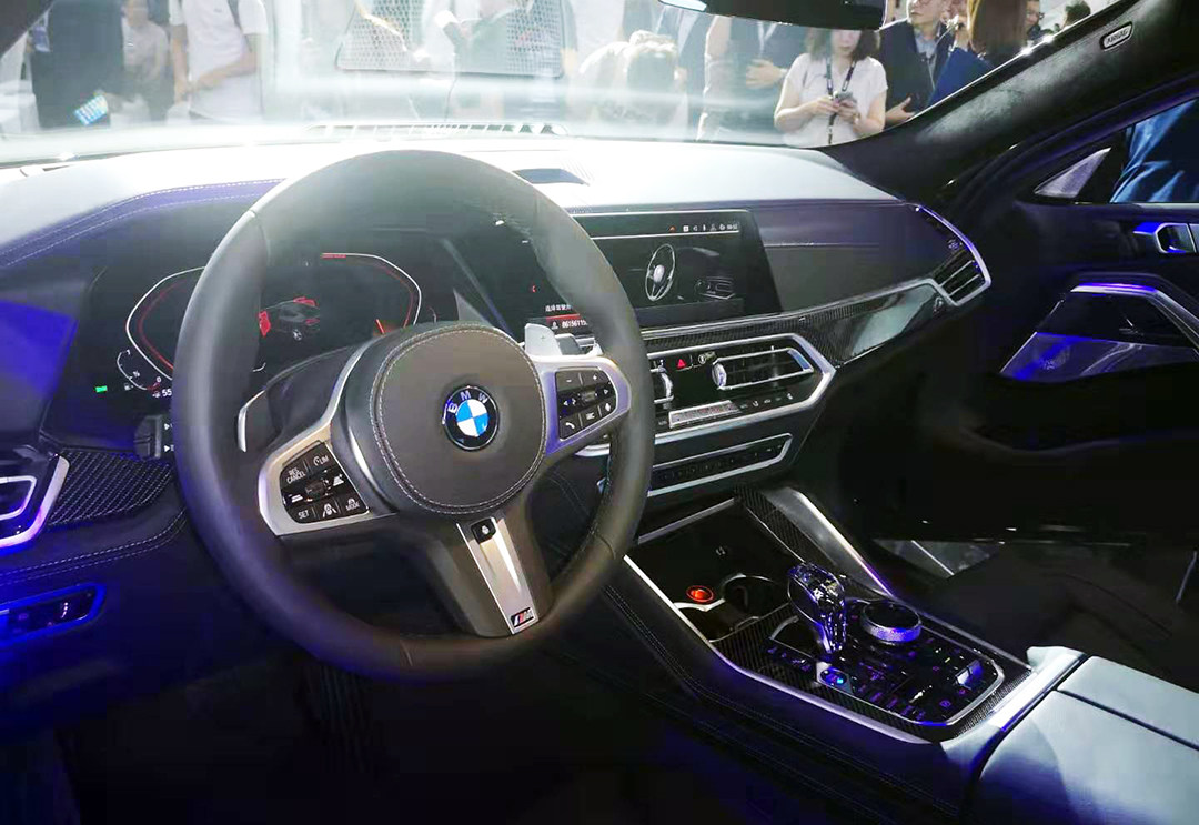 来到车内,全新一代宝马X6的内饰其实并不会有太多的惊喜,这套家族式设计风格早已经在宝马其它车型上见过,从3系、5系直至X5都基本相似。双12.3英寸的全液晶仪表和中控液晶屏符合当下的一个发展趋势,而水晶质感的全新电子换挡杆凸显出宝马X6的高贵,配合车内氛围灯,仿碳纤维装饰版,能够进一步提升车内质感。