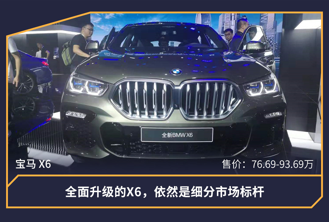新车采用了CLAR平台打造,以及采用最新家族式设计,更大的进气格栅也让它显得更威猛,尾部设计变化最大,更有GT车型的意味,用最美轿跑SUV来形容也不为过。车厢内部提升更多在于豪华质感的营造,采用最新家族式设计,带有最新iDriver 7.0系统、无线充电、全新迎宾灯、全景星空玻璃天窗以及主动驾驶辅助系统,在豪华领域做到了一流水准。动力方面,则更新了最新3.0T直六发动机,最大功率339马力,另外还可以选择4.4T双涡轮增压V8发动机,其最大功率达到了530马力,匹配8AT变速箱。全新宝马X6有着这般实力,坐实了细分市场标杆的位置。