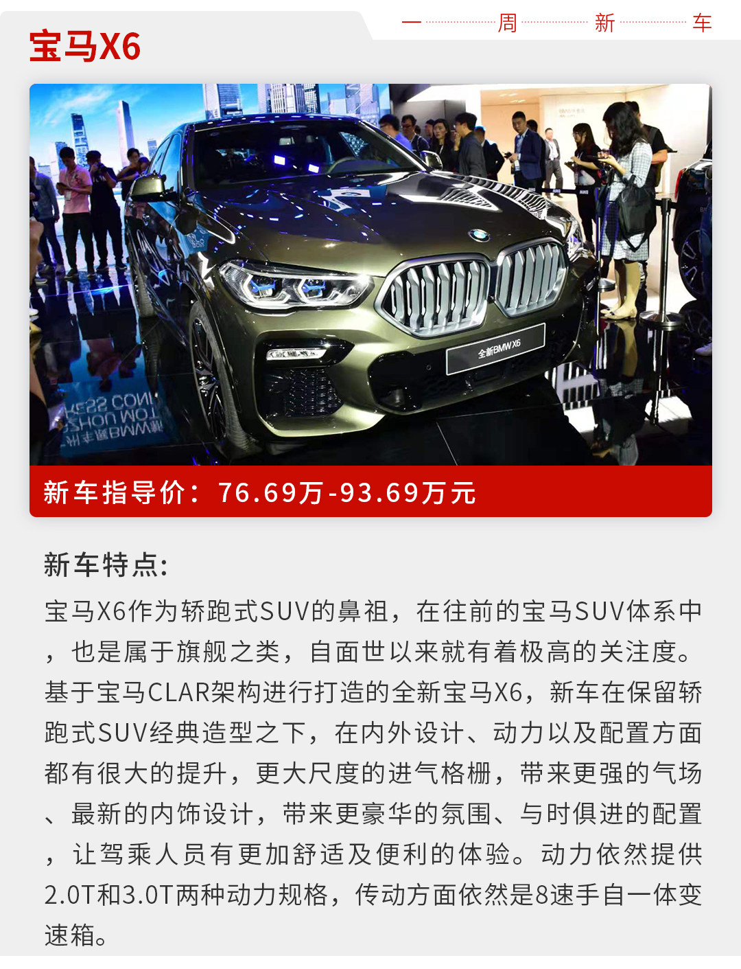 好了,以上便是本周的主要上市新车,每款新车都有鲜明的特点,值得消费者去关注。它们的到来,又给予了消费者更多的选择性。值得一提的是,在购车政策上,以上一些新车还提供了限时优惠等多种亲民政策,对于一些潜在消费者群体来说更是一大利好。