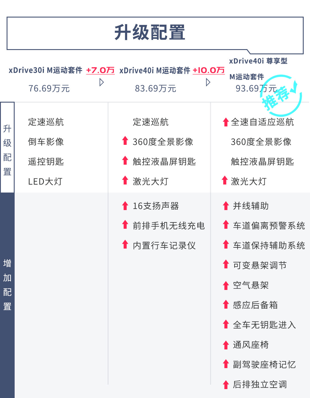 其实对比下来,几款车型的适用人群已经很明显了。动力无追求,xDrive30i即可;动力有追求,配置无感,xDrive40i M运动套件为你量身定做;动力、配置我两个都要(有钱人式全选),xDrive40i 尊享型是你不二的选择。