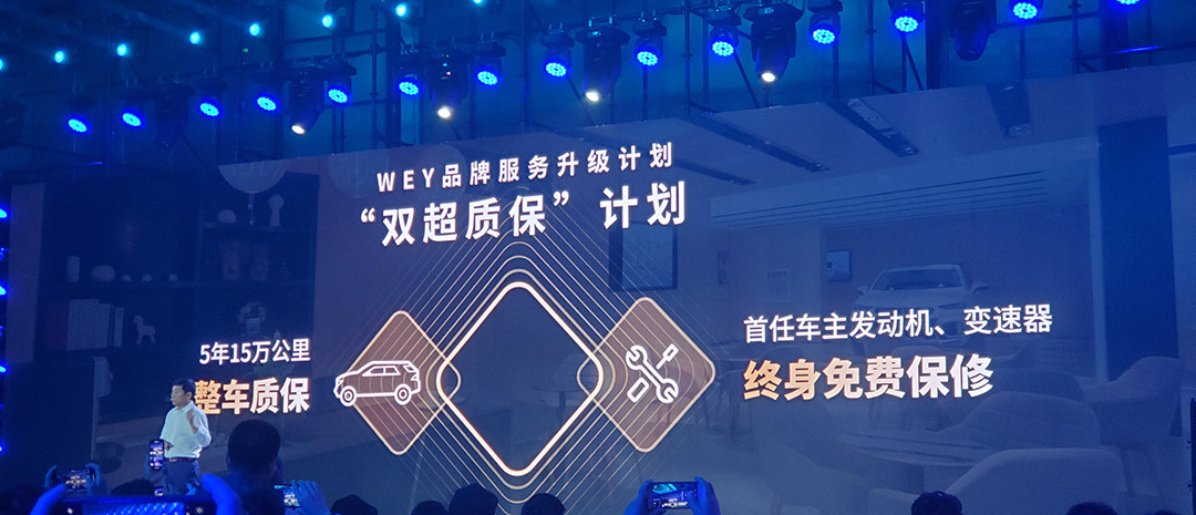 从品牌三周年之夜起,WEY品牌全系燃油车型,整车质保由原来的3年10万公里,延长为5年15万公里;除此以外,对于首任车主,无论是新车主,还是已购车的老车主,WEY品牌都提供发动机、变速器免费终身保修。