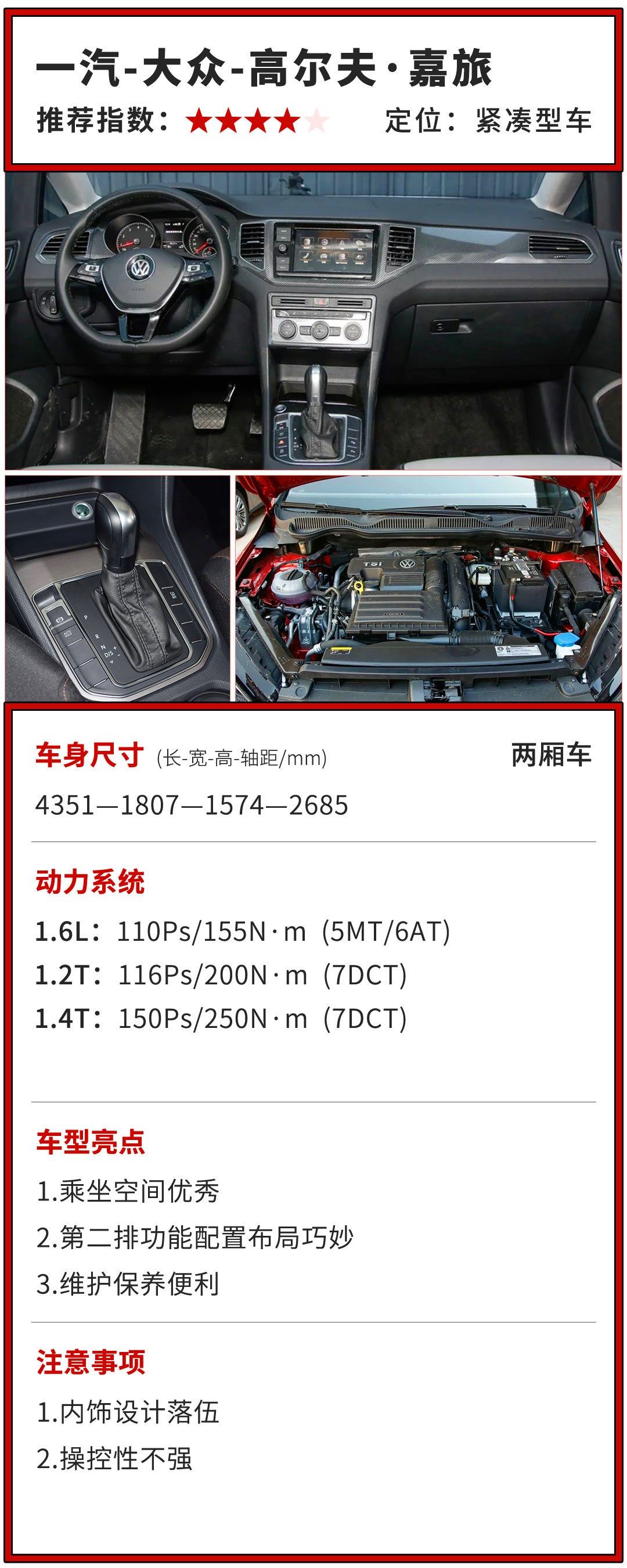 从优点上看,高尔夫·嘉旅则有MPV灵活多变的储物空间,肉眼可见很多挂钩和大而实用的储物格。而其中,教授最欣赏的设计就是前排座椅靠背后面的这个小桌板了,在大人双手不够用时,这个小桌板能够很方便地放置一些小孩子经常用到玩具、奶瓶等细碎杂物,有孩子的家庭买它当家用车,不知比三厢车和SUV合适多少倍!