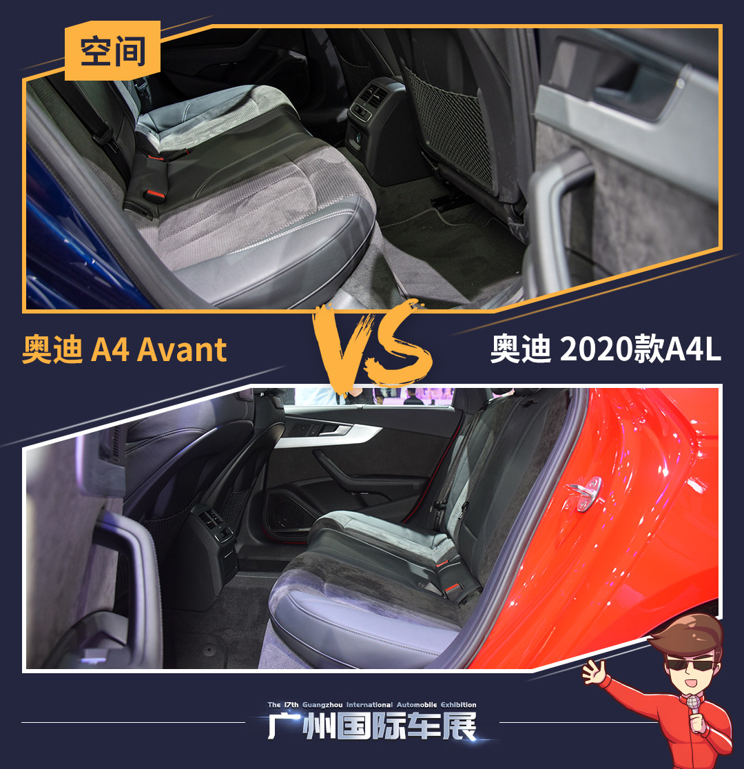 那么如果要说不同的话,就基本要从后排说起。A4 Avant采用标准轴距版底盘,与A4L相比后面会显得短一些,而打开车门后,两者的差距马上出来。一般来说,一款轿车变成旅行车后都会稍稍加长,以增加行李箱空间,并且顺手“偷”些空间给后排。但A4 Avant并没有这种戏法,它与海外版的A4长度完全相同,这就让进入国内后轴距加长83mm的A4L在后排上有了极大的优势。