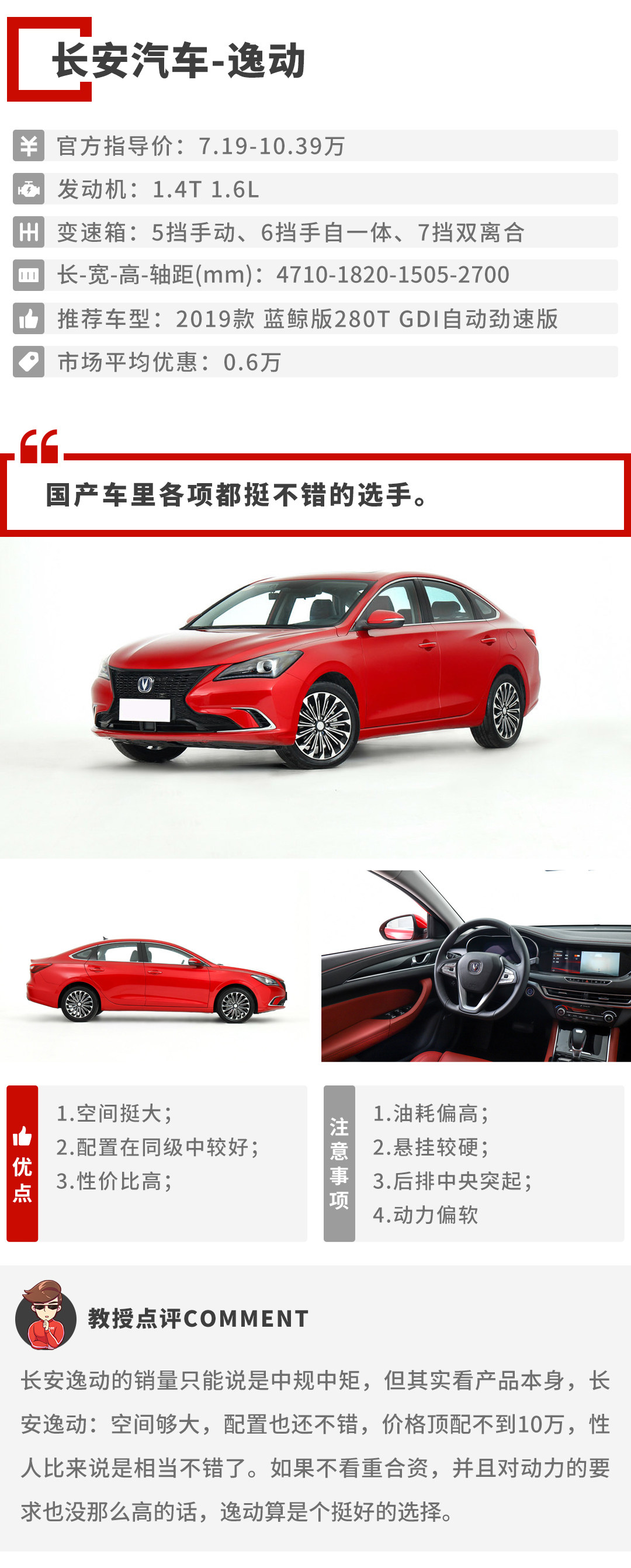 如果不那么在乎合资国产品牌的朋友,长安逸动是个不错的选择,空间更大、配置丰富、动力也不弱,而且价格顶配也才十万出头,实在是极高性价比之选。