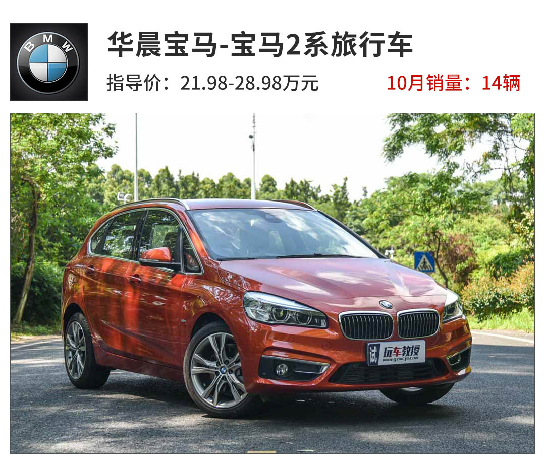 与大众蔚领同病相怜的,还有宝马2系旅行车,就算是更高一级的蓝天白云标也同样无能为力。宝马2系旅行版十月份的销量只有区区14台,已然成为了宝马品牌销量最差的车型,这还是在有着超过5万元的市场优惠的前提下,而要想知道宝马2系旅行版为何如此不堪,还得多方面去分析。