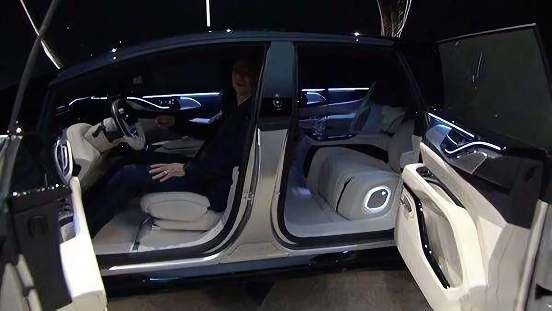 首先先是前排空间,我们可以看到,即便宣称未来,但新车依然保持传统汽车的前排布局,“未来”部分主要交由全液晶仪表、竖状斜置中控液晶屏、副驾驶前方的液晶屏、车门两侧的小屏幕以及上方的电子后视镜担当。并且根据官方释出的内饰图我们也不难发现全车将大面积采用皮质包覆,务求带来极致奢华的体验。