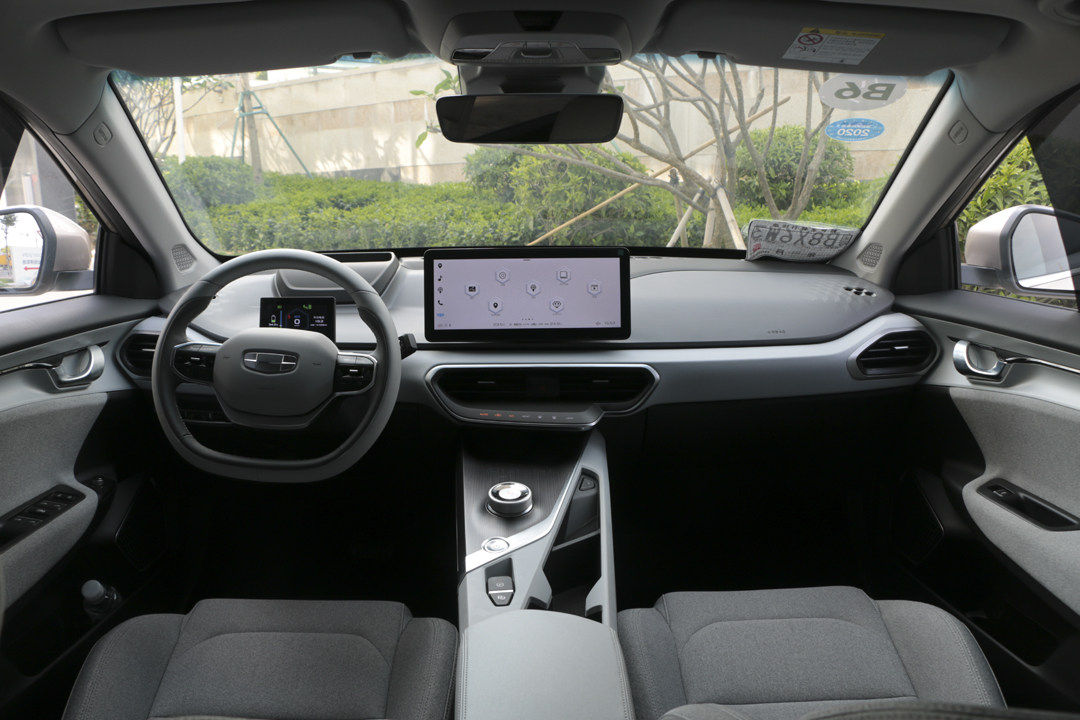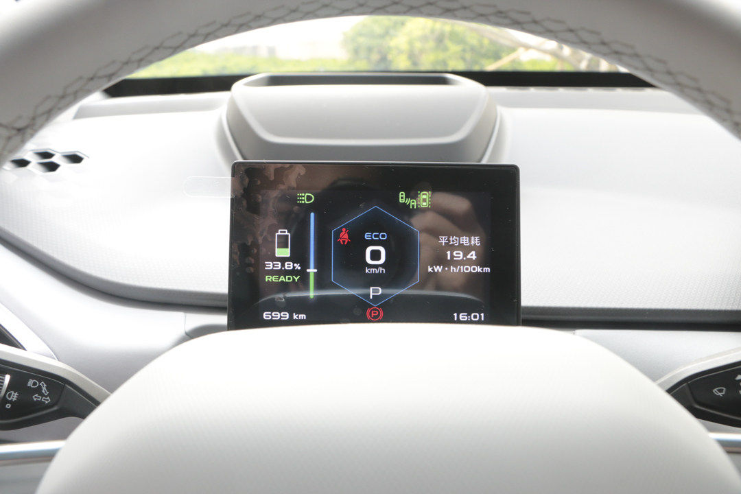 除此之外,几何A的设计同样区别于吉利此前的车型,更加概念车的外观和全新内饰设计,看起来科技感十足。但与车内科技感反差巨大的,是那块巴掌大小的液晶仪表盘,尤其是与12.3英寸的中控屏相比,4.2英寸的液晶仪表盘显得十分小家子气。