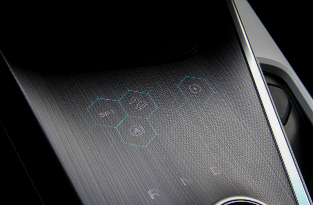 此外,过于追求高科技也并不见得是好事,比如换挡旋钮前方的E-Touch中央超感触控区,可以通过触控开启运动模式,能量回收强度、自动驻车等。虽然这样的设计很有创意,但如果在阳光下却完全看不清图标,反而变成鸡肋功能。